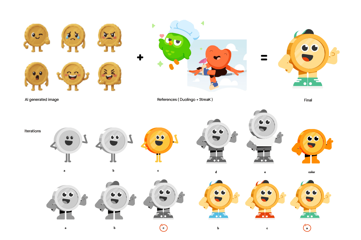 The final mascot combines character design, animation, and behaviour to create a playful and responsive presence inside the product. Built with Rive, the system is lightweight, interactive, and ready for real-time use.